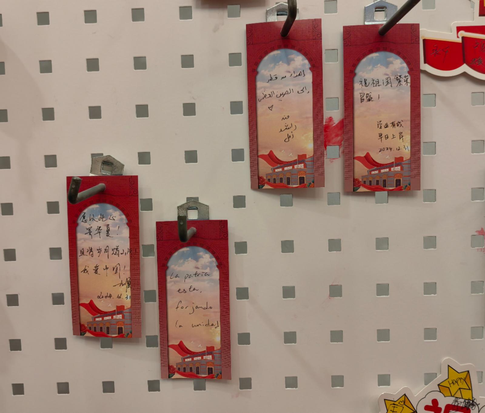 留言墙上有不同语言的寄语。于玘珺 摄影