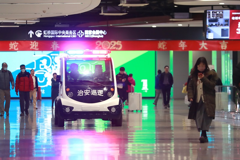 头图为新虹派出所民警彻夜在枢纽巡逻执勤。警方供图