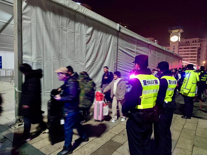 面对汹涌人潮,静安警方与铁路、交通部门联手。