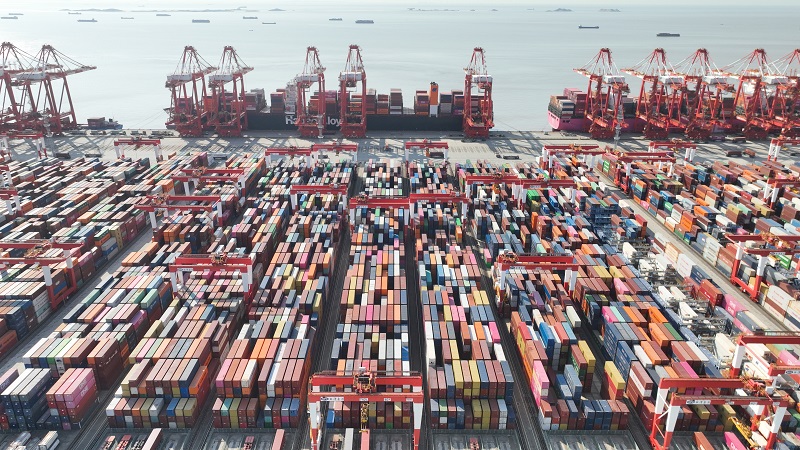 2025年以来,这种泊位饱满、车船如织的繁忙景象在洋山港接连上演。刚刚过去的1月,上海港集装箱吞吐量突破500万标箱,创造单月吞吐量历史新高,洋山港以253万标箱的吞吐量占比超五成,其中洋山一二期运营企业上海盛东码头以95万标箱创下了开港以来单月集装箱吞吐量新的纪录。