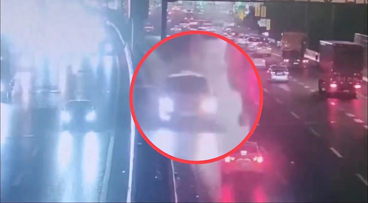 头图为驾驶员竟在高速公路原地掉头,还逆向行驶。警方视频截图