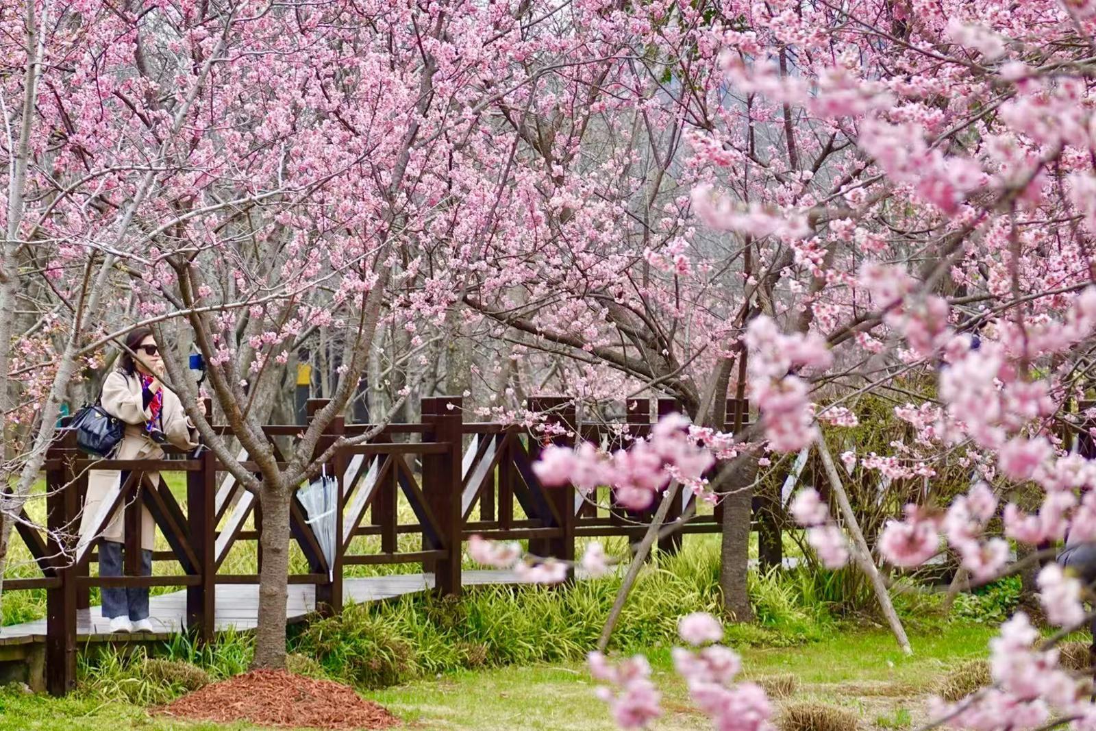 据悉,目前,顾村公园内1600余亩的樱花种植面积,120种品种以及16000余株樱花树均为上海之最。经过15年的匠心打造,全园形成了由点及线、由线及面的壮丽樱花景观,特色道路、特色景点、特色品种一应俱全,漫步园内,步移景异,风景如画。