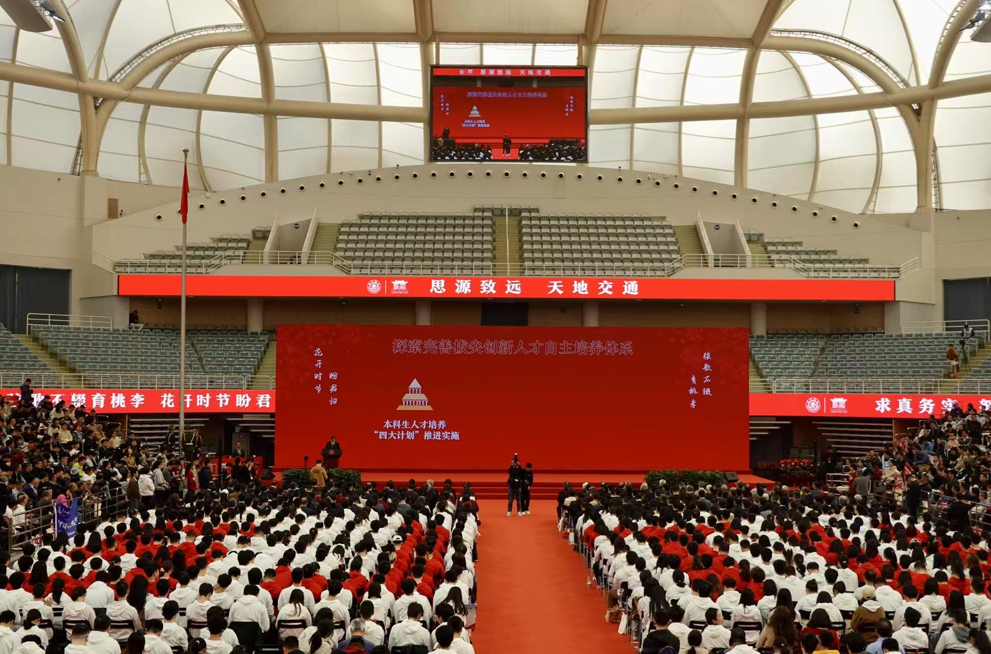 4月6日,上海交通大学纪念建校129周年大会在闵行校区霍英东体育中心举行,全球交大学子共聚母校交大,共叙思源情谊。