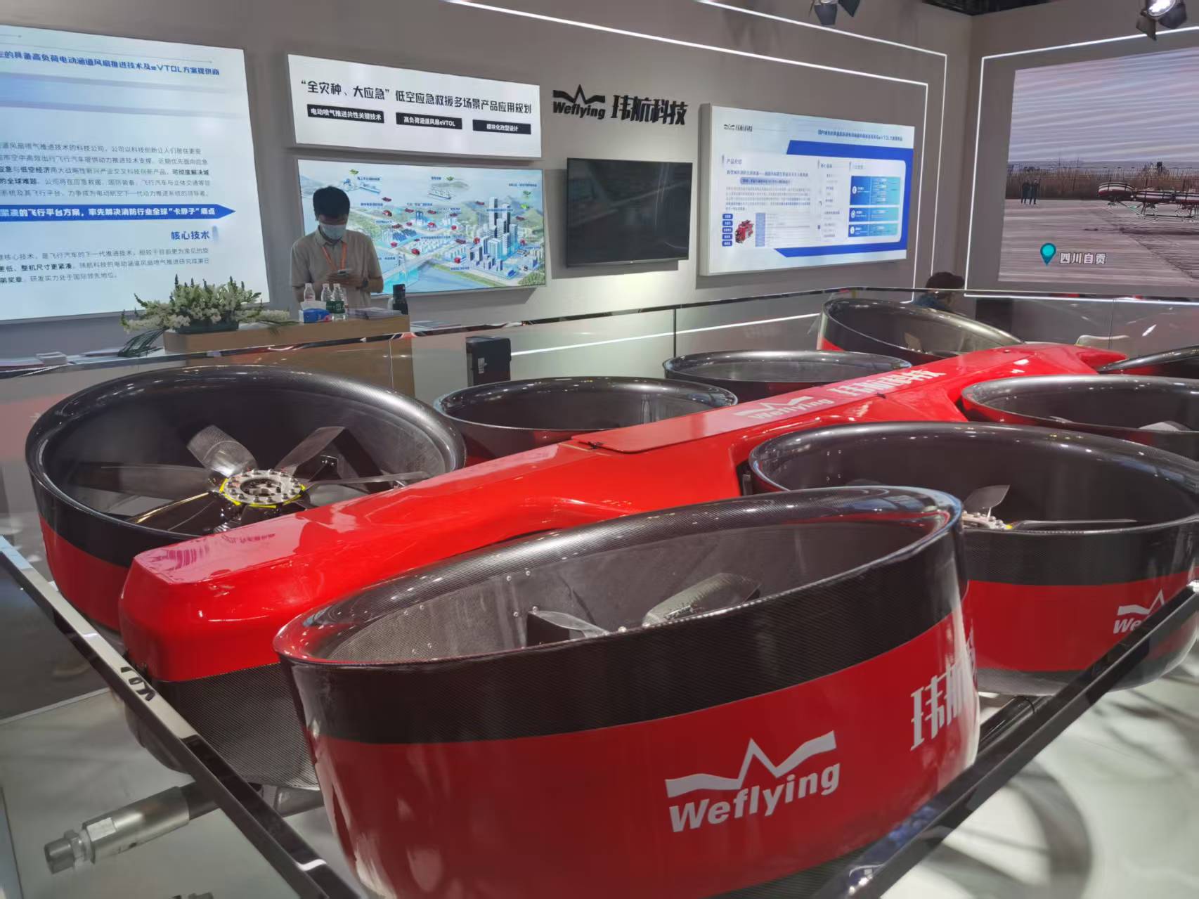 全球首创涵道风扇高空系留灭火无人机。劳动报记者 贡俊祺摄影
