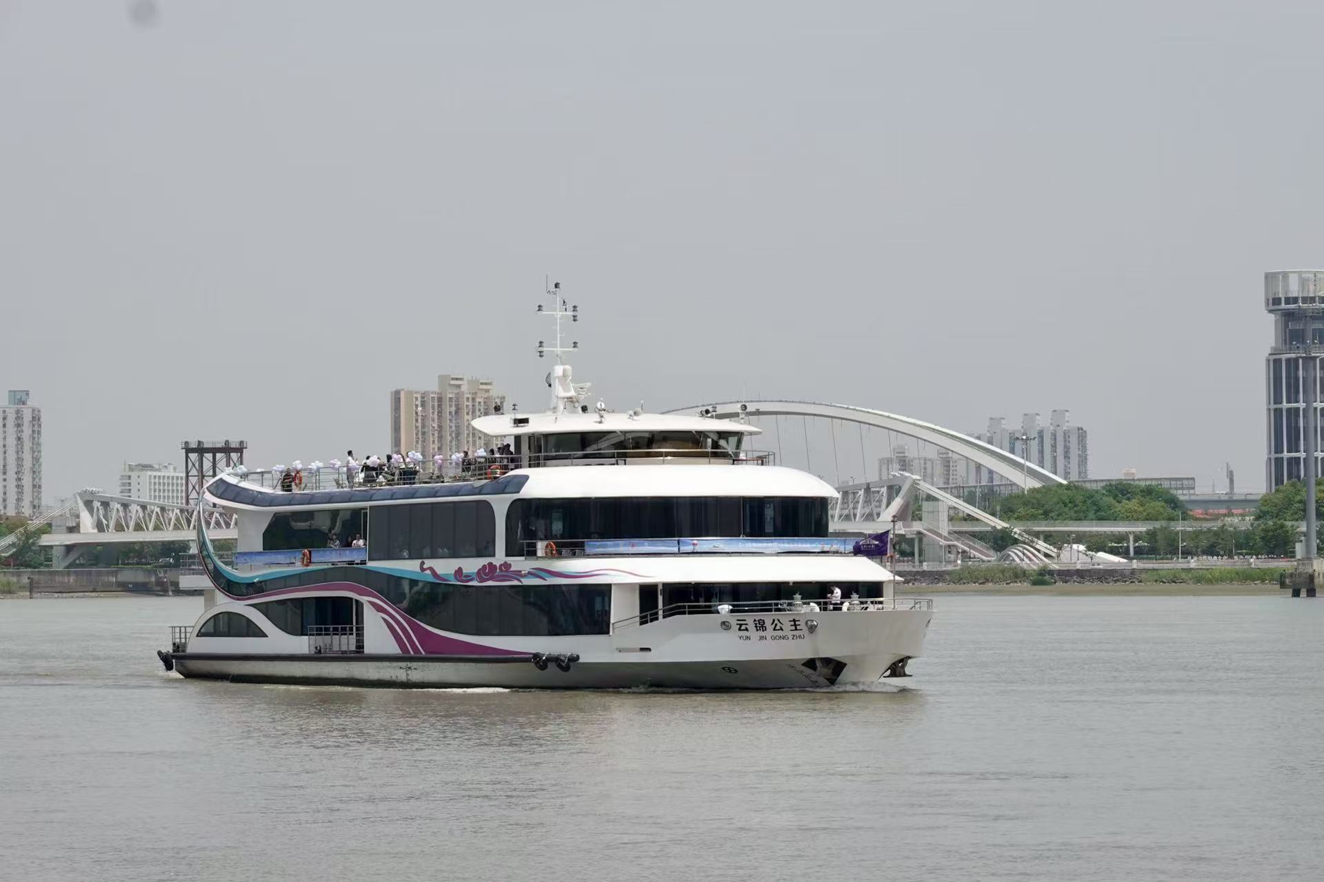 随着“云锦公主”号游船缓缓启航,“水岸呼吸新航线”正式亮相。专属西岸的全新定制化航线也正式与公众见面:从龙华码头出发,途经卢浦大桥,直至世博江面掉头,这条航线不仅是人文与生态共生的水岸会客厅,更是一座移动的城市观景台。