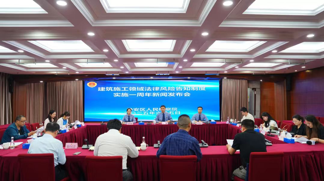 头图为“建筑施工领域法律风险告知制度实施一周年”新闻发布会。静安区检察院供图