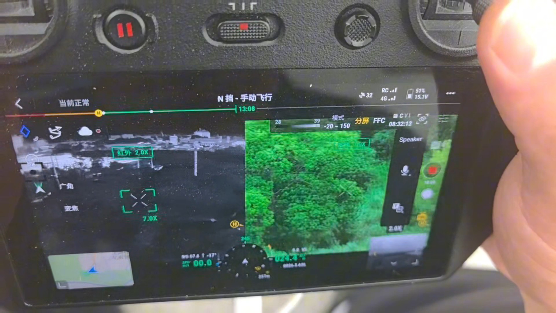 然而现场搜救条件异常艰难:搜救区域范围广阔,芦苇与树木严重遮挡视线。此时天空愈发阴沉,随时可能下雨,这将进一步提升搜救难度。低空警务专班争分夺秒,运用“可见光+热成像”地毯式扫描相关区域。无人机同步启用搭载的高音喇叭,循环播报“蔡爷爷,请走到空旷处”等提示语,争取老人的主动回应。