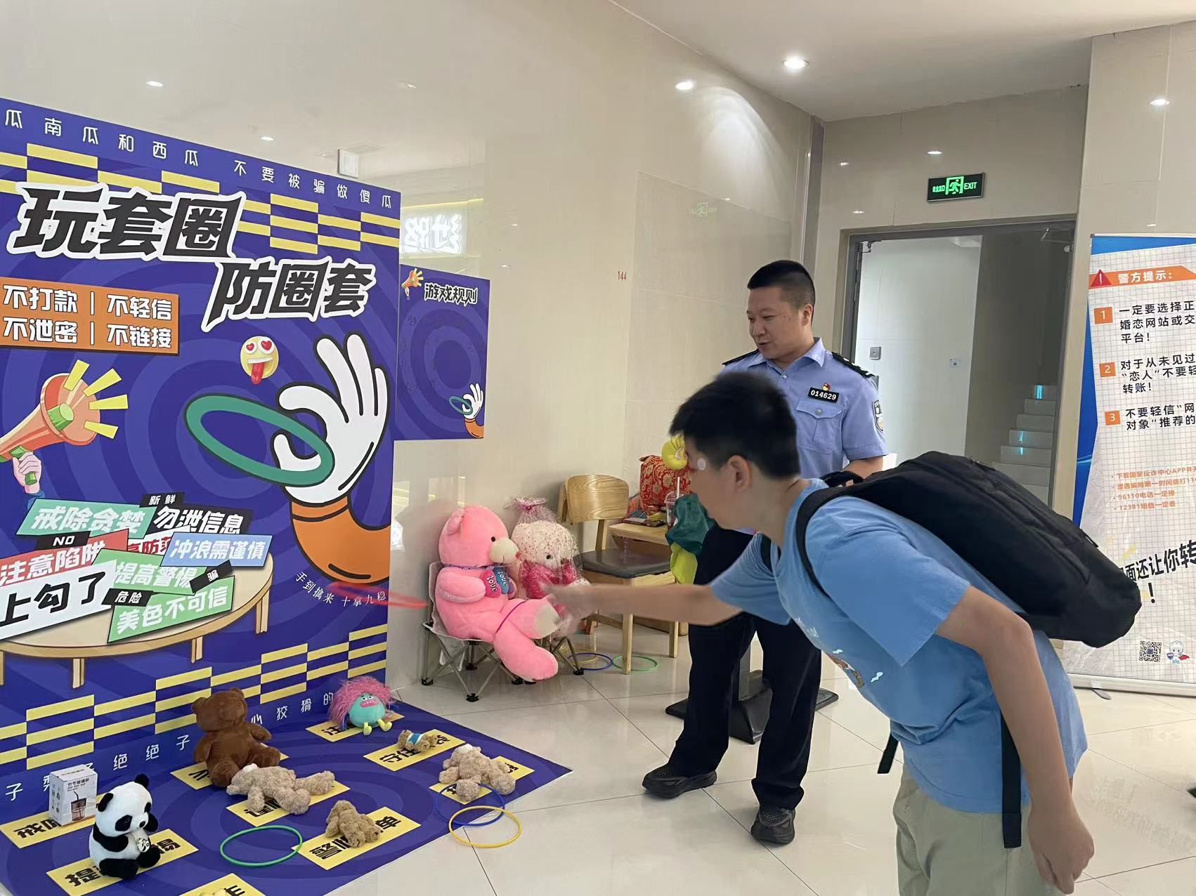 “套圈还是‘圈套’”游戏摊位上,写有不同诈骗手段的盒子被摆放在地上,员工套中盒子即可获得相应奖品,同时了解了诈骗手段。抓娃娃机玩法也融入了反诈元素,回答问题或者拍照片发朋友圈等社交媒体就能获得抓取机会。同时,沪上知名滑稽戏演员计一彪做客“张江反诈直播间“,与张江派出所民警一同拍摄反诈视频、线上直播,用幽默段子解读了反诈知识,让大家在欢笑中学习了防骗技巧。