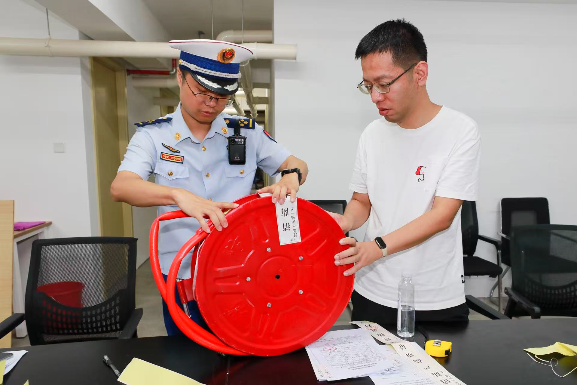 头图为杨浦消防正在对消防产品开展监督抽查。消防部门供图