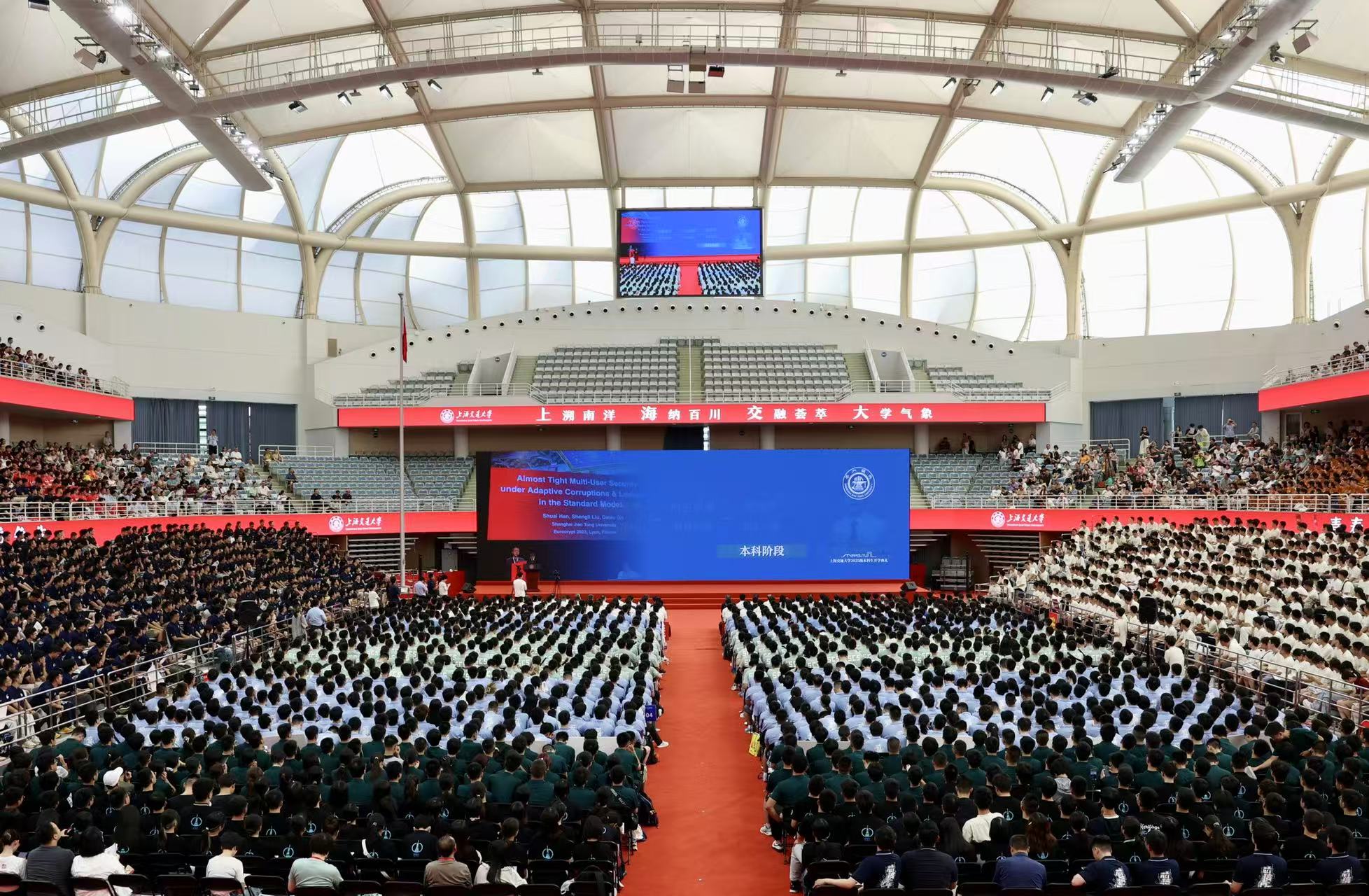 8月27日,上海交通大学2025级本科新生开学典礼和开学第一课在闵行校区霍英东体育中心举行。校党委书记杨振斌为2025级本科生讲授开学第一课,校长、中国科学院院士丁奎岭作主题演讲。