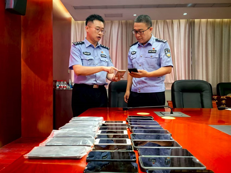 头图为警方缴获的“一体机”作弊器手机。警方供图