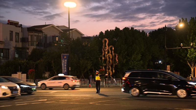 头图为民警增派警力在“四叶草”周边道路对散场车流进行分流引导。警方供图