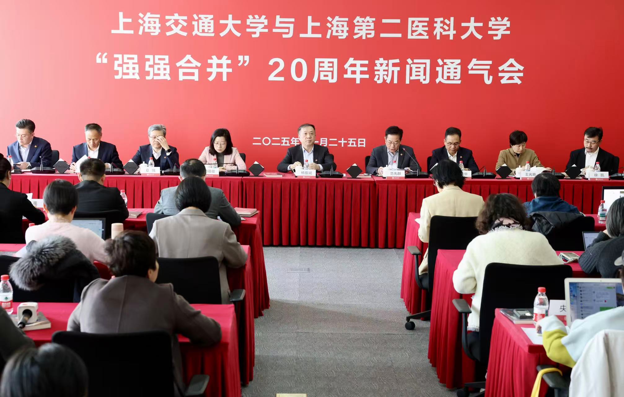 2005年,上海交通大学与原上海第二医科大学强强合并,成立新的上海交通大学医学院。11月25日,上海交通大学召开“强强合并”二十周年新闻通气会,校党委书记杨振斌在会上表示,未来将继续以建设一流的共同目标为引领,进一步解放思想,加大改革力度,促进“双向赋能”,在更高起点上加快建设中国特色世界一流大学和一流医学院。