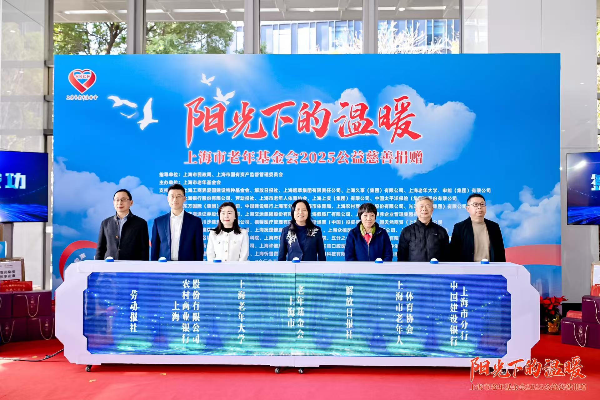 12月12日,“阳光下的温暖”上海市老年基金会公益慈善捐赠活动举行。申能集团、久事集团、上海市老年大学、解放日报社等14家单位与上海市老年基金会签署公益合作框架协议,约定整合资源,以项目化、机制化方式共同推进老年慈善事业;28家爱心企业及社会组织进行现场捐赠,捐赠内容涵盖现金、物资、服务等多种形式,总额近八百万元。上海市老年基金会还向劳动模范代表及养老机构赠送了慰问礼包。