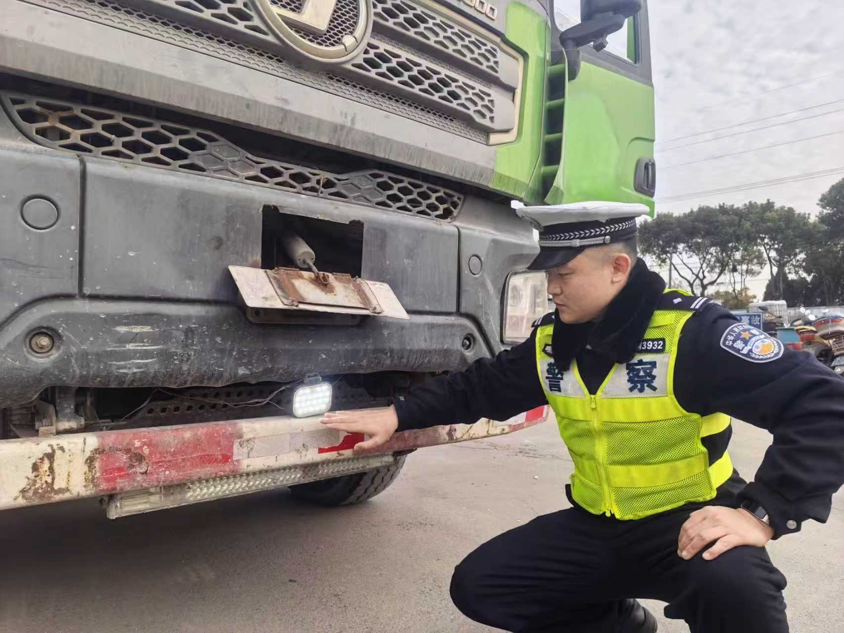 经进一步查验,这台车可谓浑身是“病”:存在严重超载违法行为,超载比例达106%;车辆尾部按规定应清晰喷涂的放大号牌被喷漆覆盖;车头非法加装“牛眼灯”。