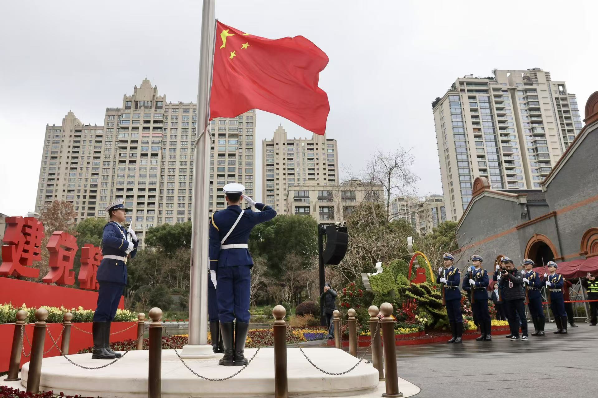头图为中共一大纪念馆举行神圣庄严的升旗仪式。劳动报记者 贡俊祺 摄影