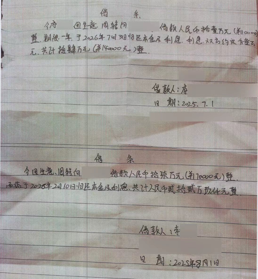 头图为嫌疑人李某开具的所谓借条。警方供图