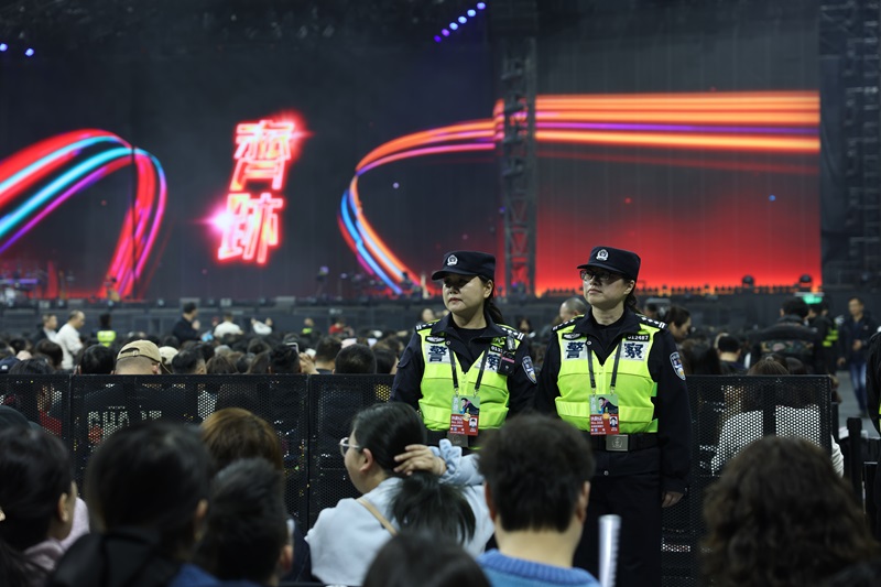 演唱会圆满结束,散场高峰随即到来。浦东警方结合历次大型演出散场疏导的经验,提前研判、周密制定了散场预案。场馆内外民警和工作人员迅速到位,采取分流措施,防止大面积拥堵,确保周边道路交通秩序良好。“请大家不要拥挤,注意脚下安全,”民警不间断开展安全提示与秩序维护,及时化解人流聚集风险,全力保障离场通道畅通。当最后一名观众平安离场,本次演唱会安保任务也圆满落下帷幕。