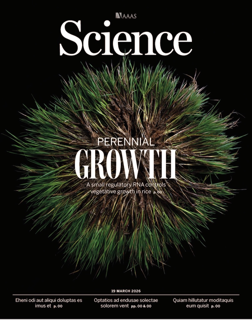 3月20日,中国科学院分子植物科学卓越创新中心,植物性状形成与塑造全国重点实验室韩斌院士团队和植物高效碳汇重点实验室(中国科学院)王佳伟研究员团队,以封面形式在国际权威学术期刊《科学》(Science)上发表题为“Resetting of a tandem microRNA156 enables vegetative perennial growth in rice(两个串联miRNA156基因的重置赋予水稻多年生特性)”的论文。该研究首次克隆了决定野生稻多年生生活习性的关键基因EBT1,并阐明了该基因座位表达模式的改变是水稻在驯化过程中由多年生向一年生转变的关键。