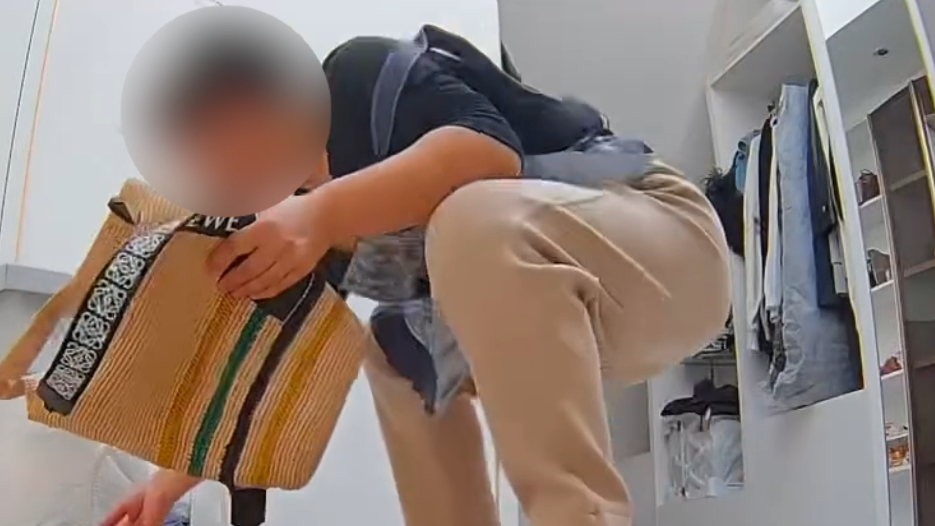 头图为嫌疑人李某从雇主家的柜子中翻出包袋准备行窃。警方供图