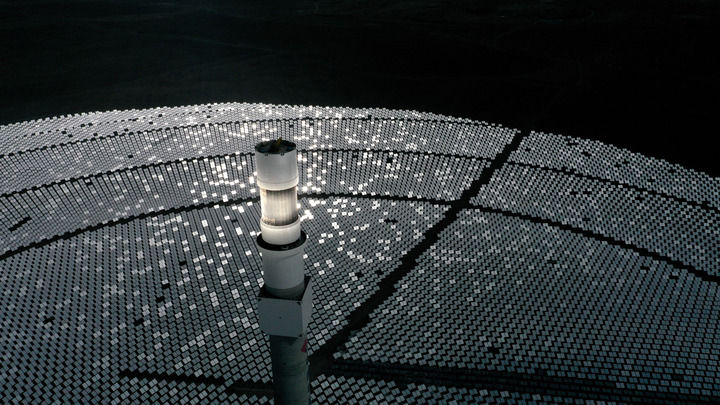 这是位于青海省海南藏族自治州共和县光伏产业园内一处塔式光热发电项目(2021年3月3日摄)。新华社记者张宏祥摄