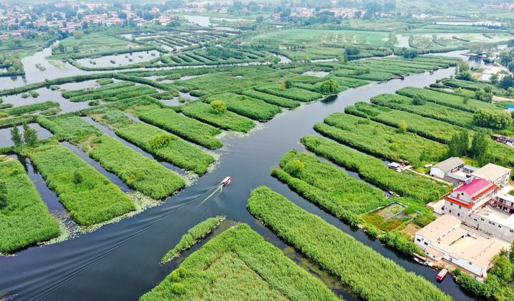2021年8月14日,船舶在雄安新区白洋淀内行驶。新华社记者牟宇摄