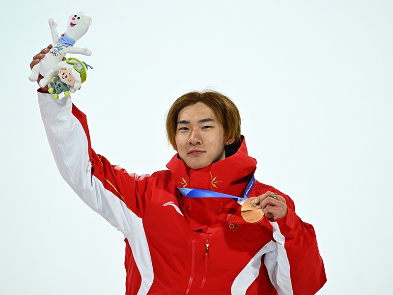 2月7日,季军中国选手苏翊鸣在颁奖仪式上。新华社记者张宏祥摄