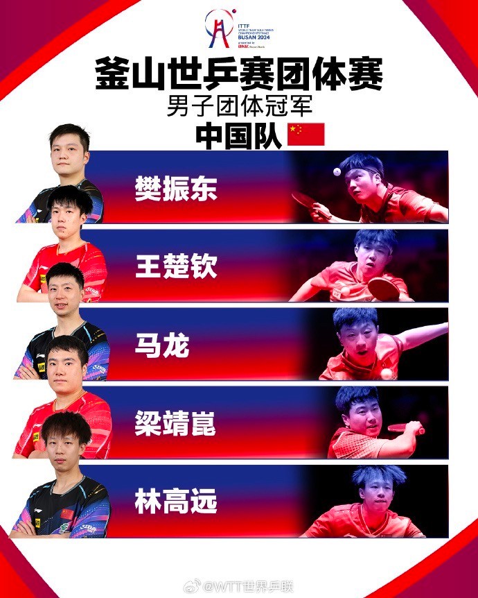 2月25日,2024年国际乒联世乒赛团体赛在韩国釜山结束全部赛程。在刚刚进行的男子团体决赛中,由王楚钦、樊振东和马龙出阵的中国队以3∶0战胜法国队,夺得冠军。这是中国乒乓球队连续第11次,也是历史上第23次捧起世乒赛男子团体冠军奖杯斯韦思林杯。
