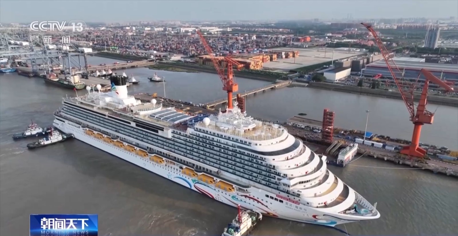 总台央视记者吴天白:在4艘拖轮的帮助下,首艘国产大型邮轮正在缓缓地靠泊上海外高桥码头,这次试航从7月17日开始,历经8天,试航任务涉及推进系统、操作系统以及舒适性等60余项试验任务。