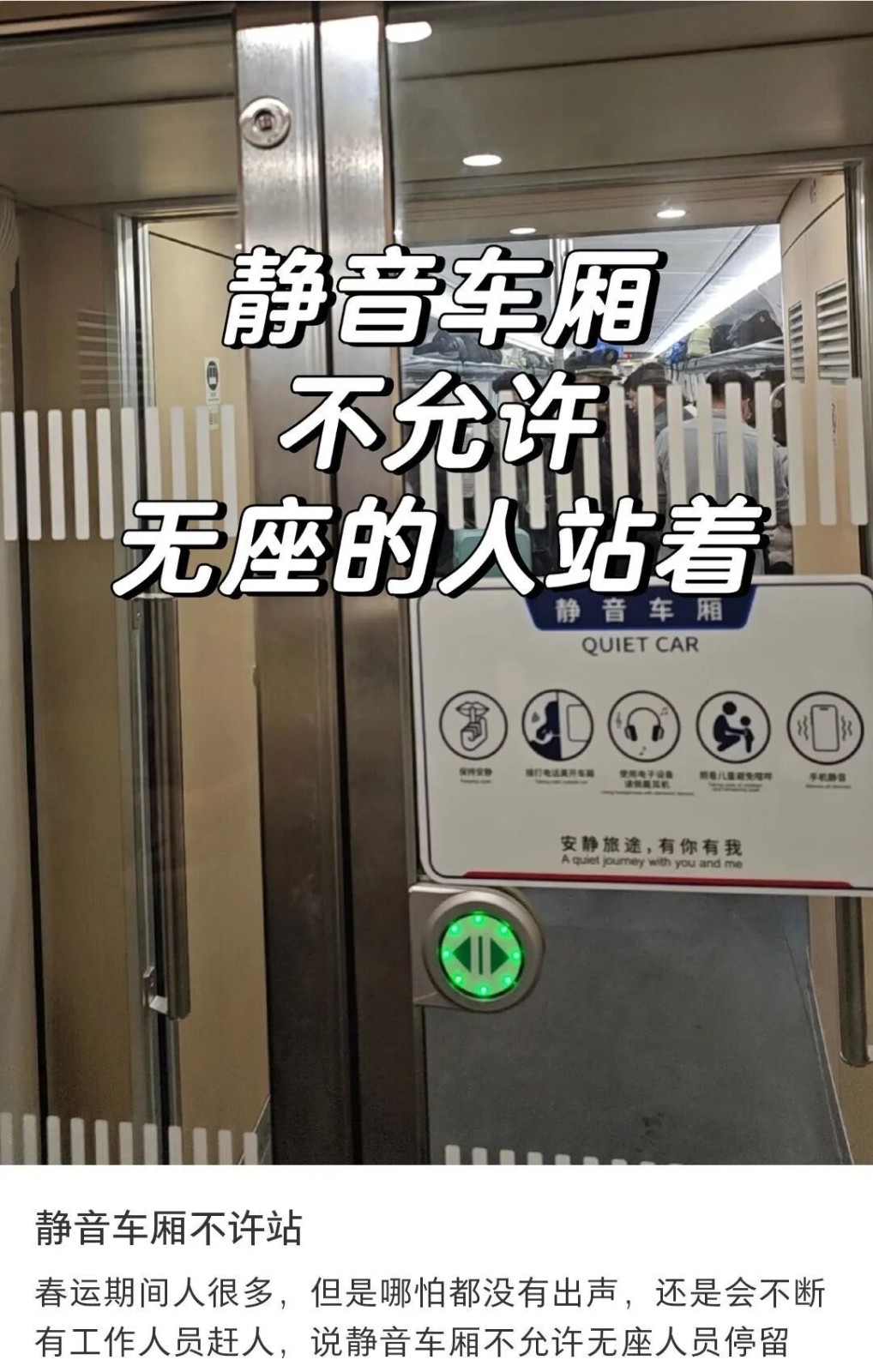 无座乘客被劝离静音车厢,公共空间需规则共识