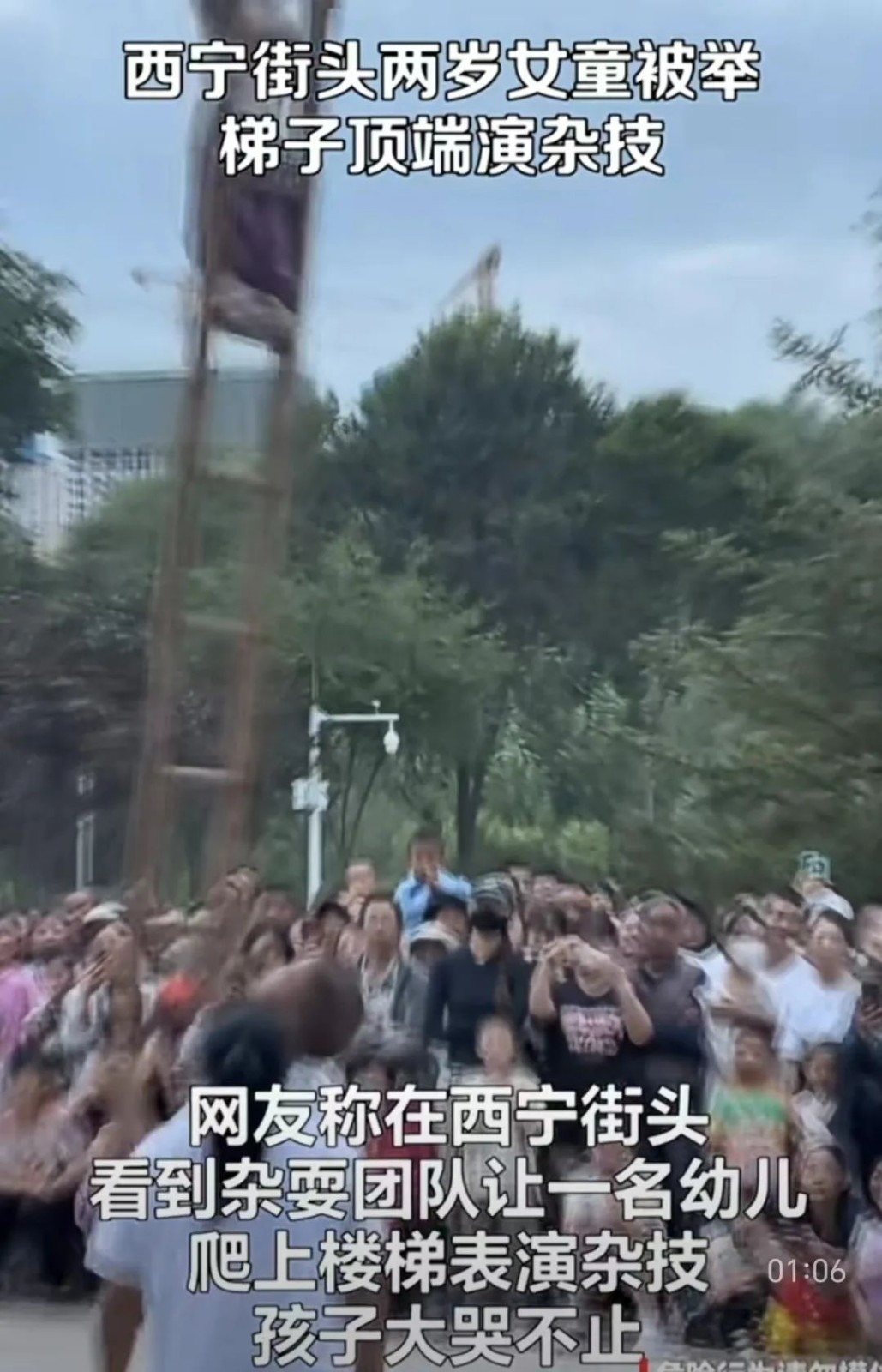 而此事中,幼童在没有任何防护措施的情况下,站在竖到空中的梯子上,如果孩子出现任何“动作错位”,或者下面梯子的托举者稍有闪失,后果都不堪设想。这压根就不是什么杂技表演,而是赤裸裸的对未成年人安全权益和身心健康的侵害。