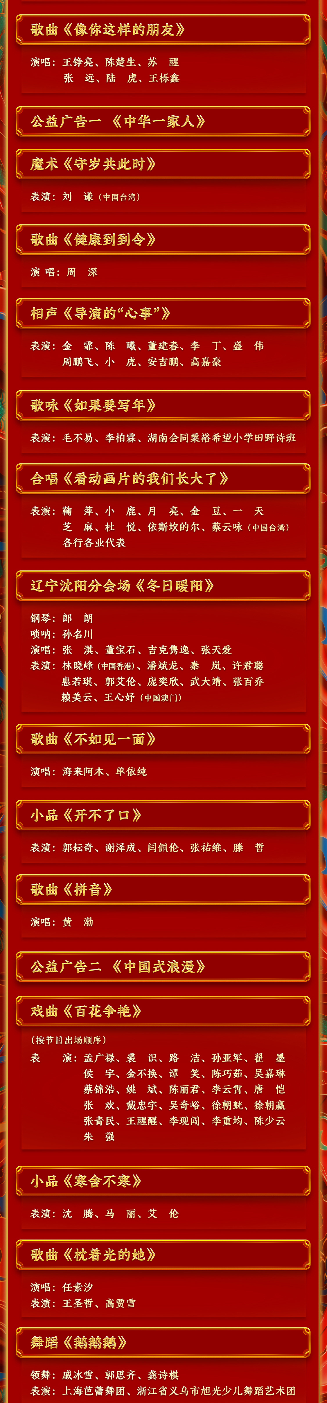 春满中华,福到万家。中央广播电视总台《2024年春节联欢晚会》节目单正式发布。