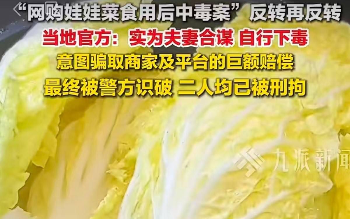 近日,浙江天台“夫妻食用网购娃娃菜中毒”一事迎来戏剧性反转。