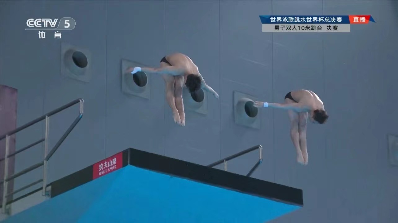 两人配合的第五跳207B同步性很高。总台解说员表示,从现场角度看,两个人都“跳重影了”。