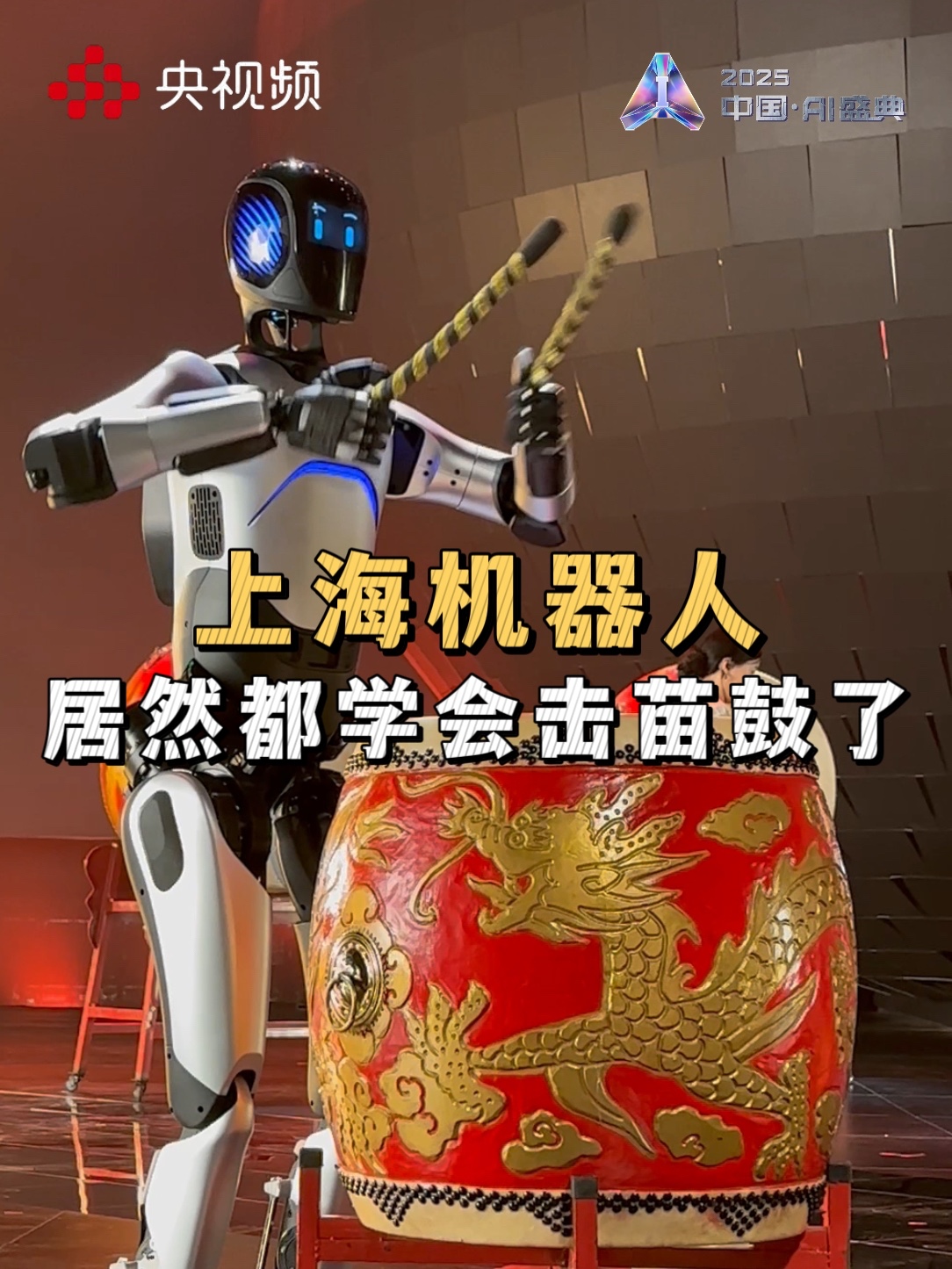 你见过机器人打鼓吗?当千年苗鼓韵律撞上机械节拍会擦出怎样的火花?在上海徐汇区录制的#2025中国AI盛典#上,@智元机器人 秀新技能,让苗鼓十三姨直呼“圆梦了”!上央视频,解锁更多盛典精彩瞬间~