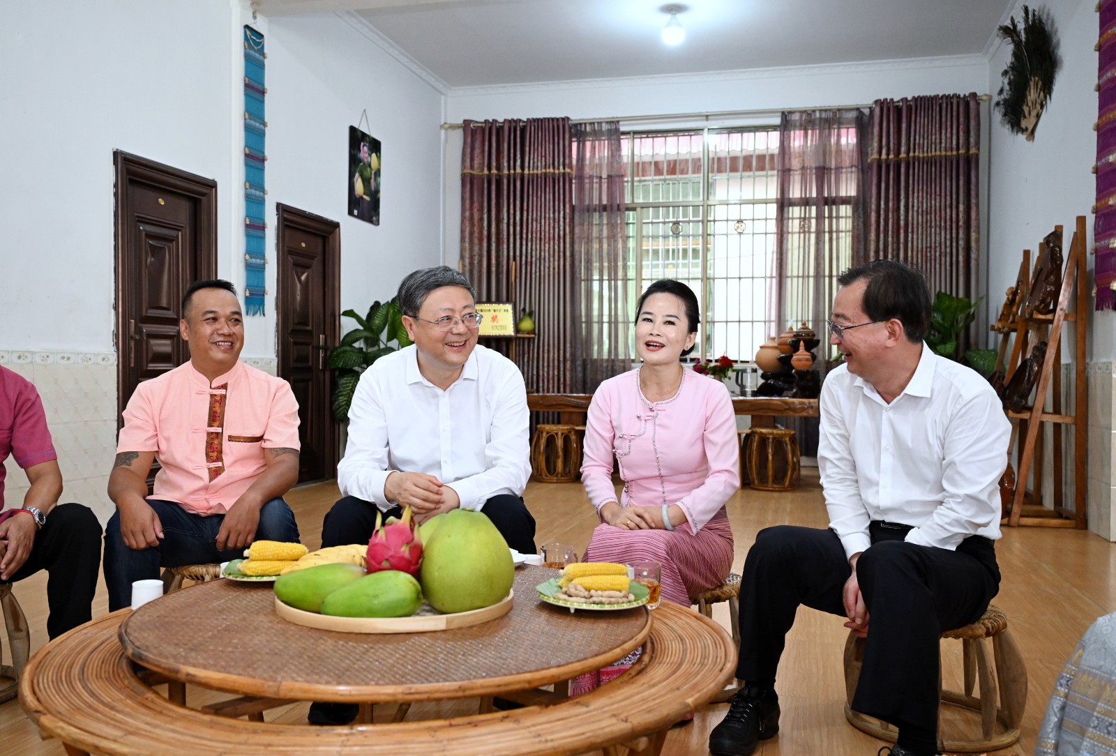 全面推进乡村振兴,让老百姓过上好日子,是沪滇协作的共同目标。在西双版纳州勐腊县勐仑镇城子村,蓝色尖顶的傣族民居错落有致、干净整洁。依托沪滇协作平台,这里建起民宿客栈、推出特色集市、发展研学旅游。沪滇领导察看非遗技艺和村容村貌,来到致富带头人依光亨家中,围坐一起拉家常、说变化,共同算起收入账、致富账。依光亨的话中透着感动和自豪。她说,在上海亲人帮助下,村民们学到了不少增收法子,自己到上海接受培训后尝试直播带货,为村里的特色农产品打开了销路。陈吉宁祝愿依光亨一家生活越来越红火。他叮嘱援滇干部,今年是巩固拓展脱贫攻坚成果同乡村振兴有效衔接五年过渡期的最后一年,要强化责任担当,保持干劲冲劲,实打实做好对口帮扶各项工作,持之以恒助力对口地区牢牢守住不发生规模性返贫致贫底线。着眼群众需求,拓展增收渠道,更好“授人以渔”,不断增强发展内生动力,让脱贫成果更加巩固、成效更可持续。