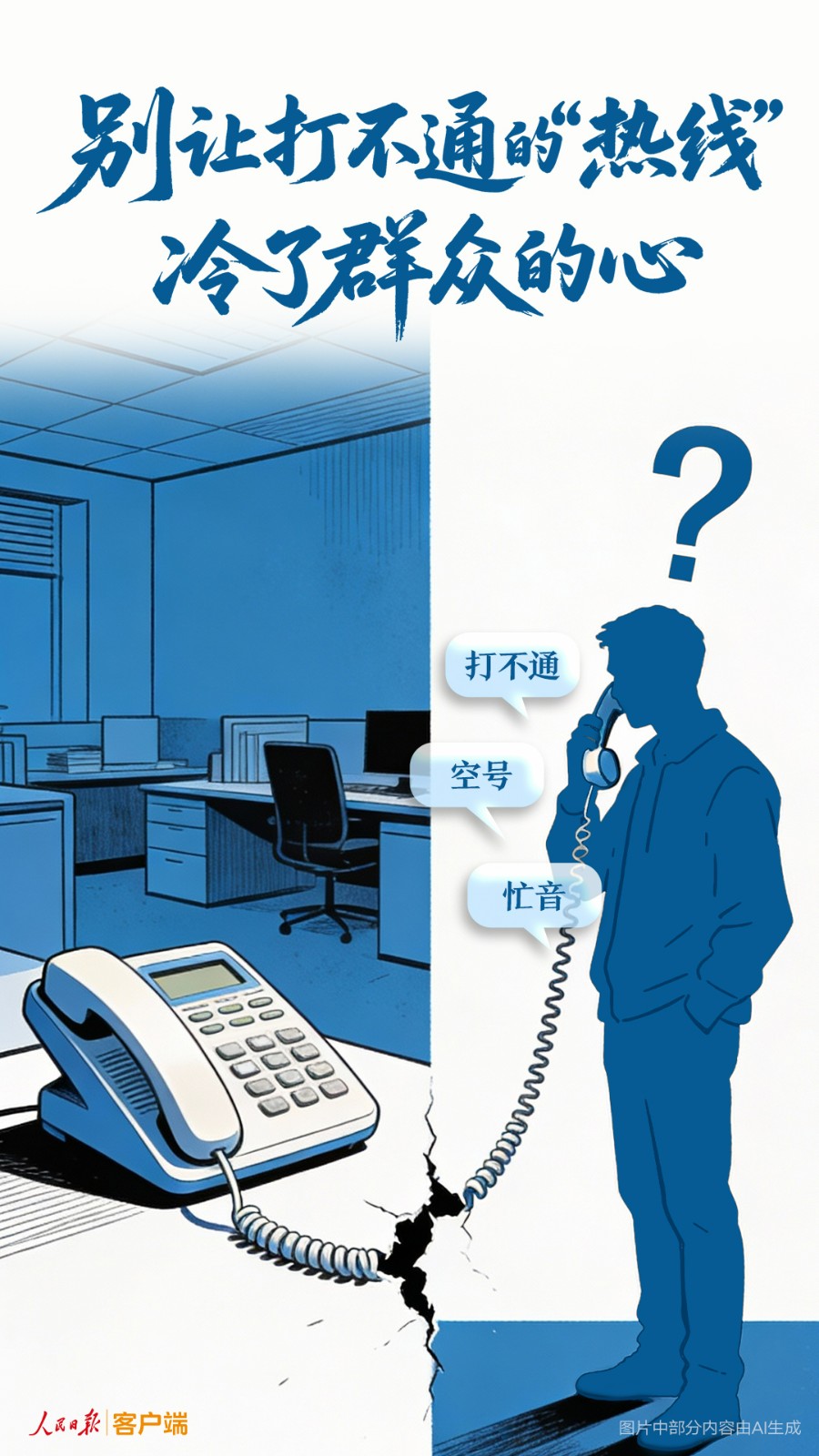 一串号码、一通电话,是政府与群众沟通的重要窗口,别让热线电话一头热一头冷凉了群众的心。确保公共服务电话不“掉线”,让群众真正感受到“为民服务”就在身边,“小热线”背后,连着大民生。