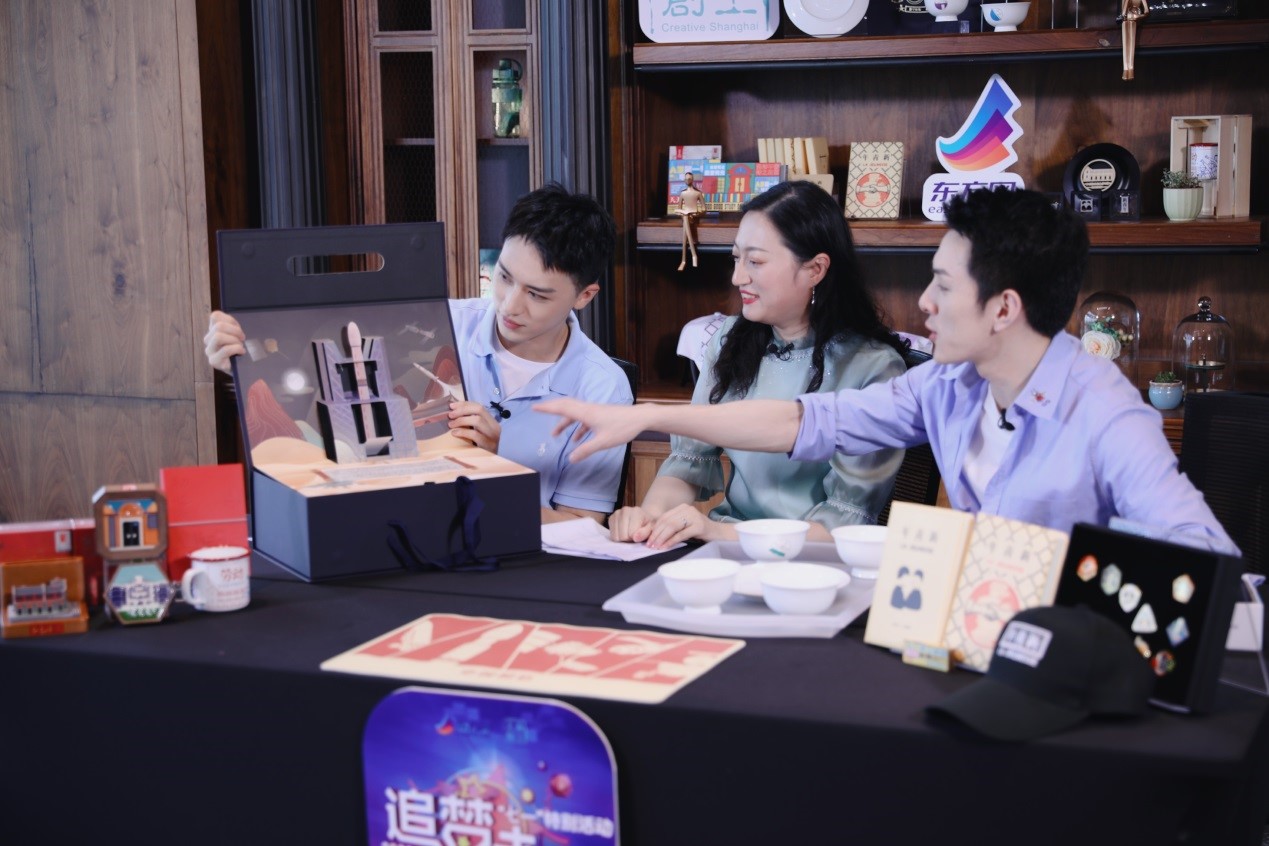 在上海中心119楼,李佳琦、许魏洲两位“追梦者”与一大会址纪念馆副馆长宋依璇共同开启了一场“主播带货”,从精巧的一大会址立体便签、限量版的火箭任务徽章到复古风格的《新青年》系列……这些精美的文创产品通过艺术设计得以呈现,将精神力量转换为可见可用的实体,让红色文化落地生根,真正“飞入寻常百姓家”。