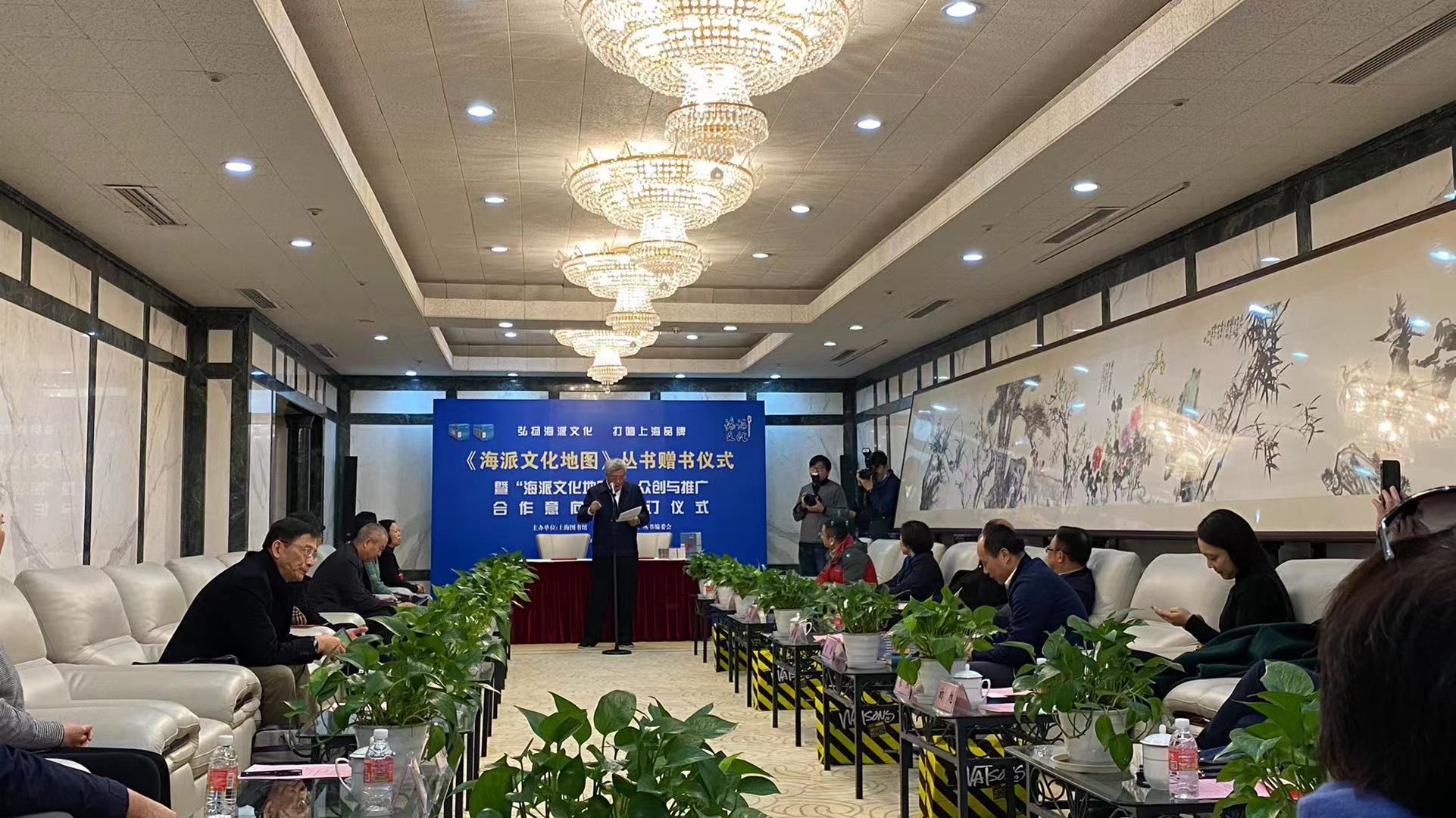 12月22日下午,《海派文化地图》丛书赠书仪式暨“海派文化地图”IP众创与推广合作意向书签约仪式在上海图书馆举行。丛书编委会副主任兼总主编柴俊勇代表丛书编委会,向上海图书馆赠送了一套共16本的《海派文化地图》丛书。