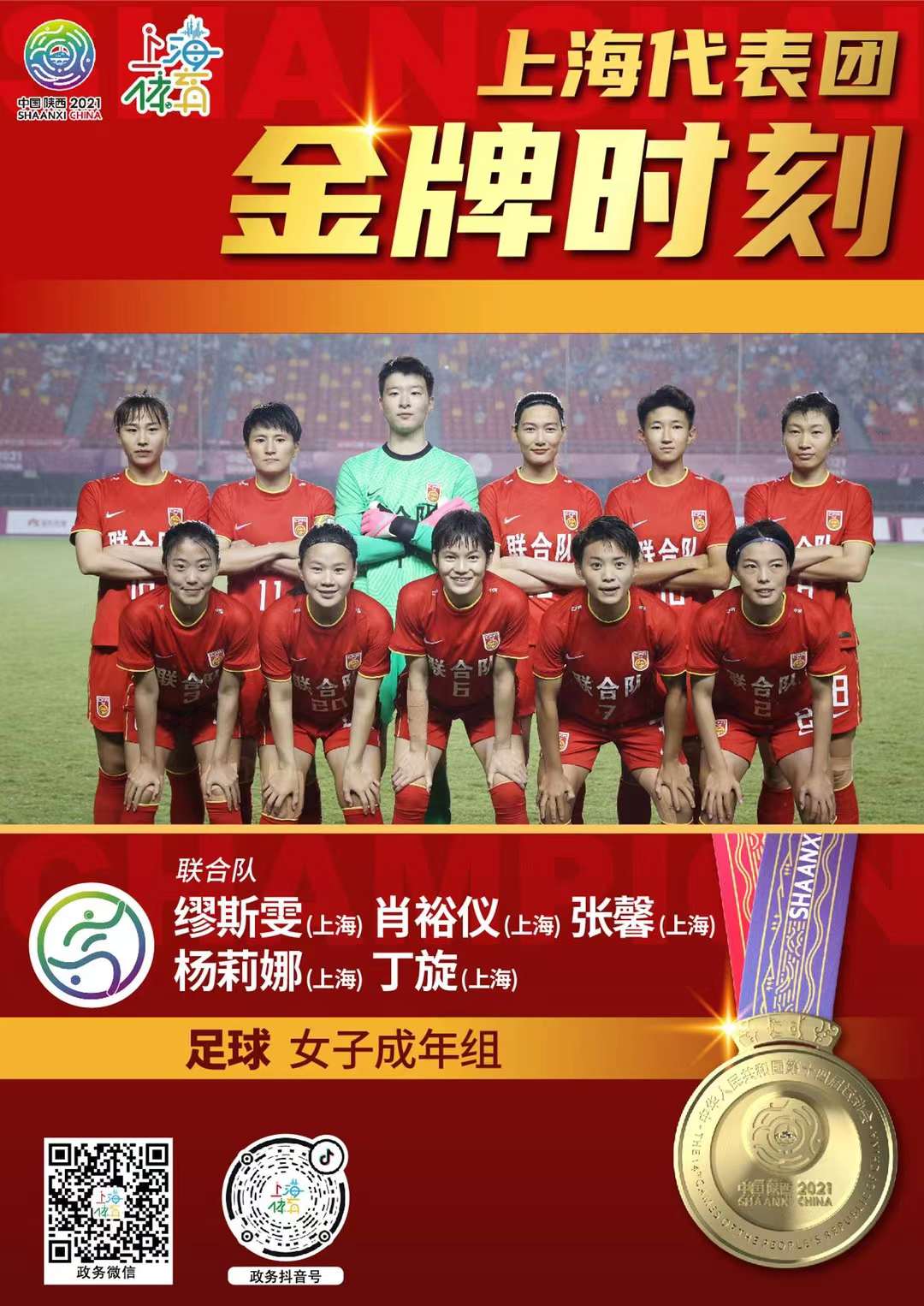 按照全运会规则,联合队如果获得奖牌,那么输送国脚的省市代表团也可以有相应奖牌入账,这意味着无论联合队和上海队谁夺得冠军,上海代表团都已经提前确保了在女足成年组项目上收获1金1银。