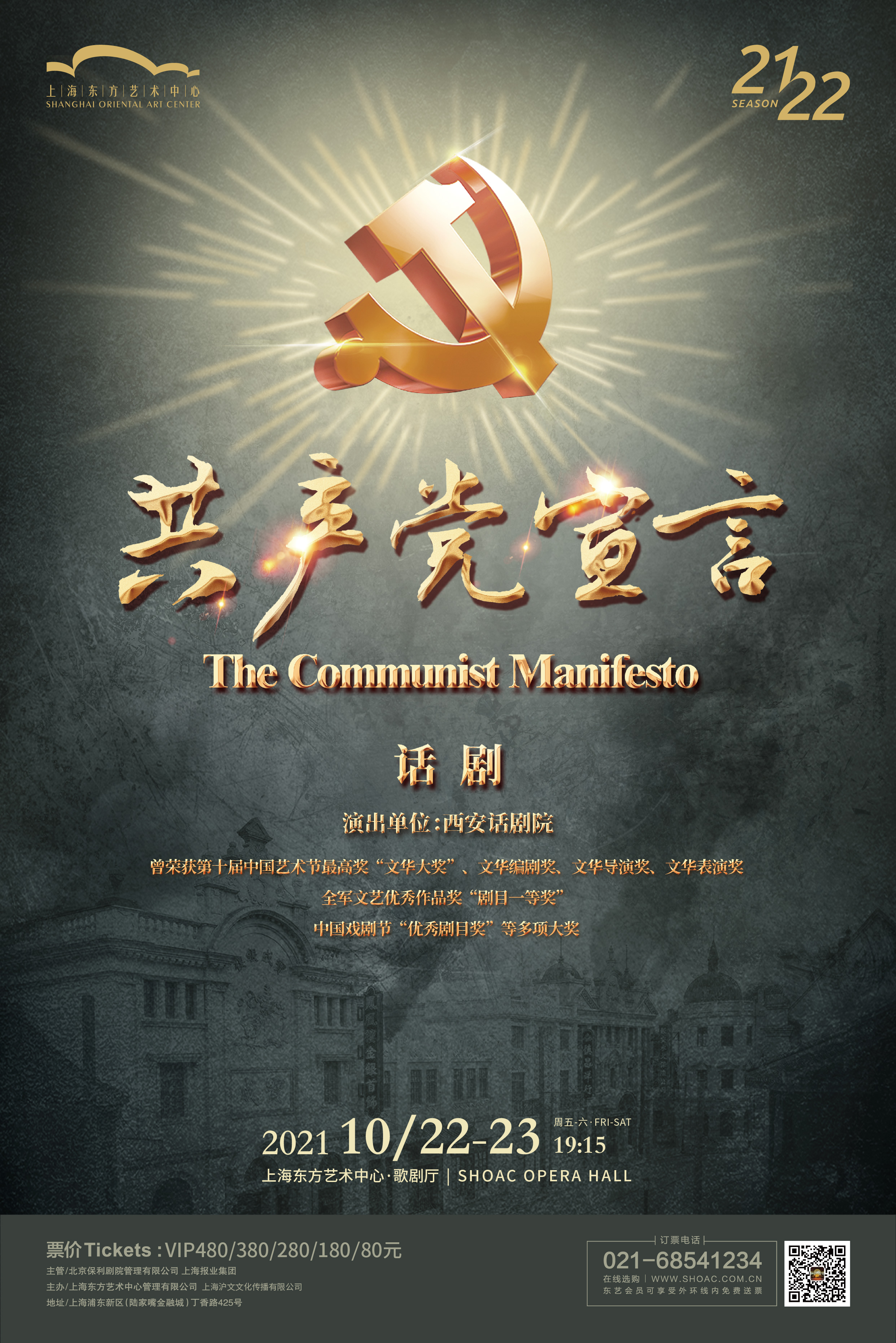 1848年,马克思、恩格斯著作的《共产党宣言》问世,“全世界无产者联合起来”的口号响遍世界各地,它的诞生昭示了全世界共产党人的初心与使命。由西安话剧院创排的“文华大奖”话剧《共产党宣言》,将于10月22日-23日在上海东方艺术中心与观众见面,红色经典作品辉映东艺2021/22秋冬演出季“红色篇章”板块,以连续两晚两场表演用艺术的表现形式唤起人们对红色历史的回忆。