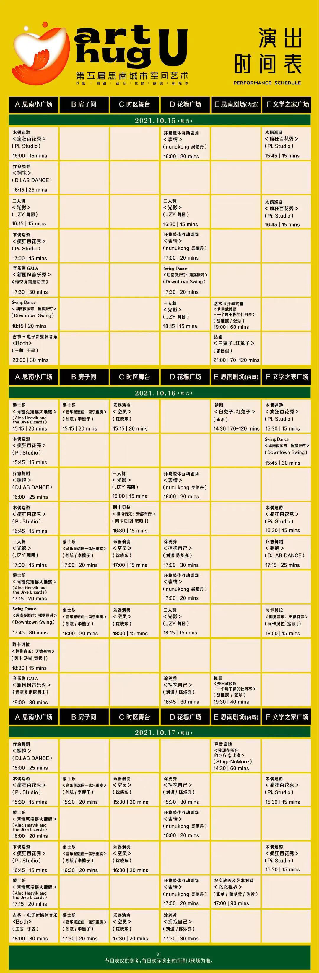 百名年轻艺术创作者融合戏剧、舞蹈、音乐、影像、展览、新媒体等6种艺术表现形态,将在思南5个舞台区,3天持续演出,为市民带来近70场各类演出。