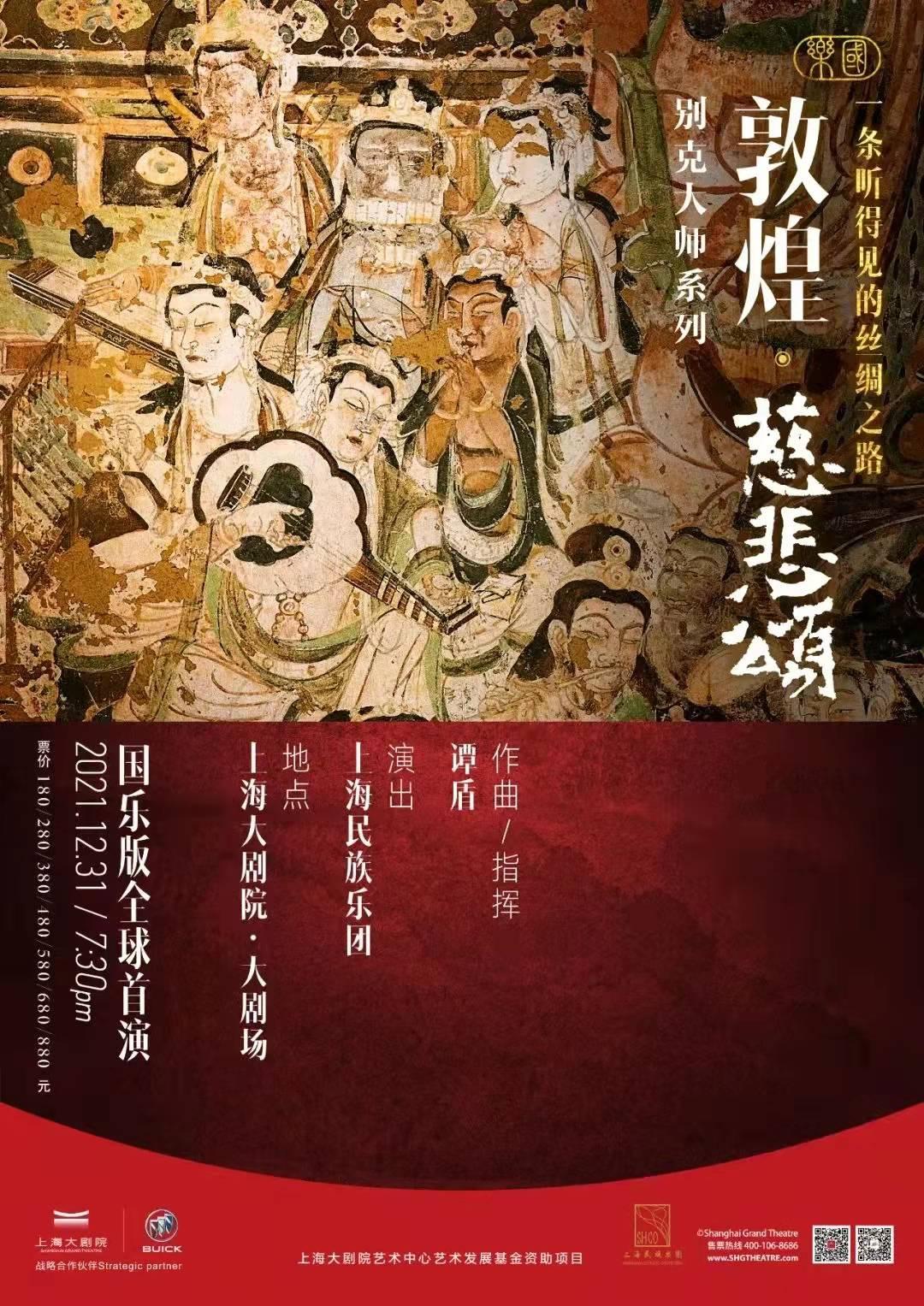“别克大师系列”上海大剧院新年音乐会已连续七年奏响。继《乐响四季》、《紫禁城》之后,今年,上海大剧院、上海民族乐团将再次牵手,献上《敦煌·慈悲颂》国乐版全球首演。这部作品由国际音乐大师谭盾为上海民族乐团量身打造,从配器、编排上都将尽显上海民族乐团演奏家的高超技艺与演奏特色。
