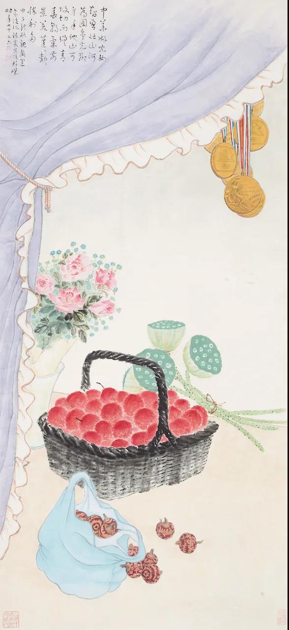 展览中不乏海派大家的作品,不少作品首次与观众见面。如陆俨少难得一见的人物画作品《冰上运动》描绘一位少女正踏着冰刀在冰面上舞蹈,少女身姿飒爽,充满了蓬勃之朝气;俞云阶的中国画《夺冠》用色大胆强烈,笔墨洒脱,将公鸡夺冠之神情刻画得入木三分,充分表达了画家内心欢悦,显示出画家深厚的西洋油画的功底与色彩表现,同时体现中国画笔墨特点;画家周鍊霞在观看1984年洛杉矶奥运比赛后,绘就了中国画作品《硕果》,画中主景为一篮娇艳欲滴的荔枝,配以莲蓬、荸荠和鲜花,又在景后帷幕高悬几枚金光灿灿的奖牌,寓意中华健儿在奥运会上取得骄人成绩如累累硕果。