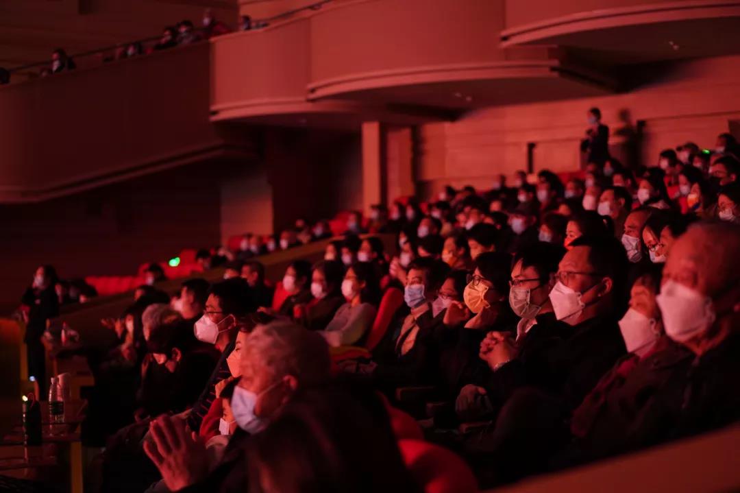 时间倒退回当晚演出前的剧场。火红的新春装饰随处可见,点亮了人们更真切的喜悦和兴奋,不少观众身着节日的服装,在大厅处驻足合影留念。一群二三十岁的年轻人聚拢在一起一边谈笑,一边等待他们的同伴,吸引了记者的注意。