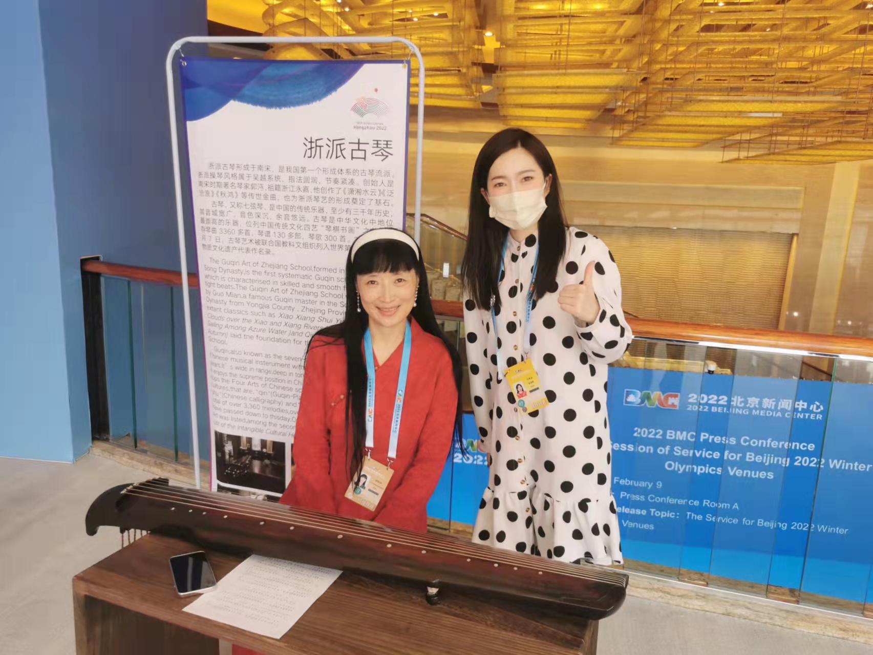 章怡青告诉记者,她是2月4日跟着亚组委一起来到北京,“有机会在新春佳节,在双奥之城见证这场冰雪盛宴,对我来说是最荣耀的事,那天又刚好是冬奥会开幕的日子,感受到了大家的热情,也让我更加期待在这里奏响浙派古琴的声音。”