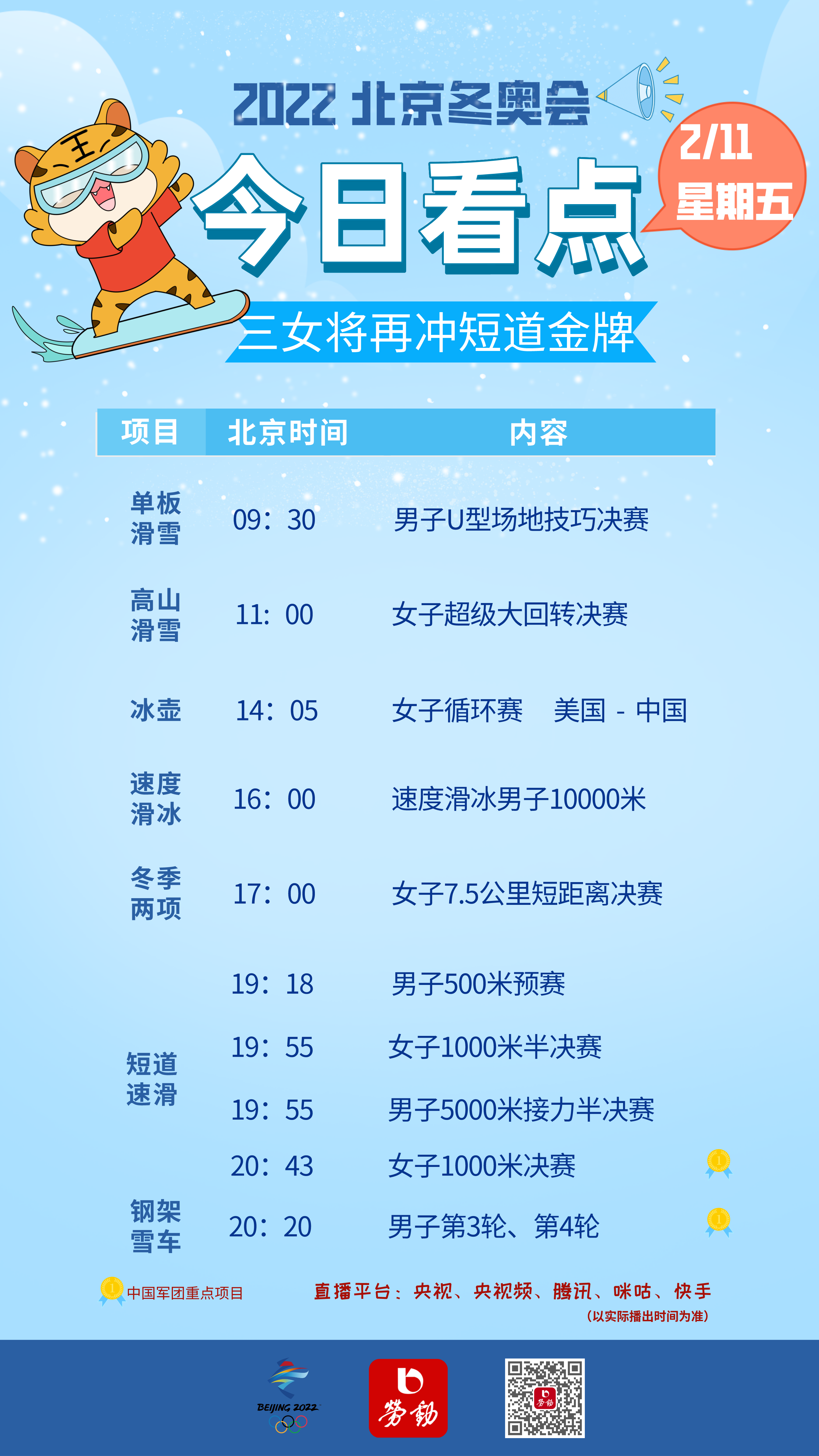 当日还将进行男子500米资格赛和男子接力半决赛,500米卫冕冠军武大靖和已经获得1000米金牌的任子威领军,中国男队将奋力拼搏,争取进入最终的决赛。