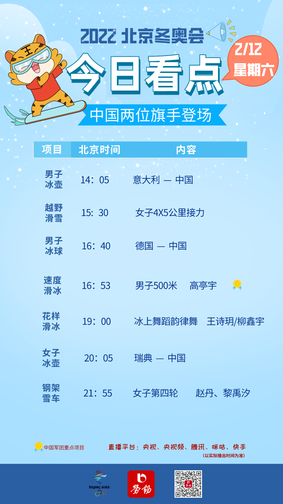 此外,12日,中国军团在冰上项目中也看点颇多。14时05分,中国男子冰壶队将在面对意大利队时力争两连胜;16时40分的男子冰球小组赛,中国队将直面冬奥会亚军德国队;20时05分,两连败后的中国女子冰壶队卷土重来,迎战强敌瑞典队,能否“复仇”,同样值得期待。
