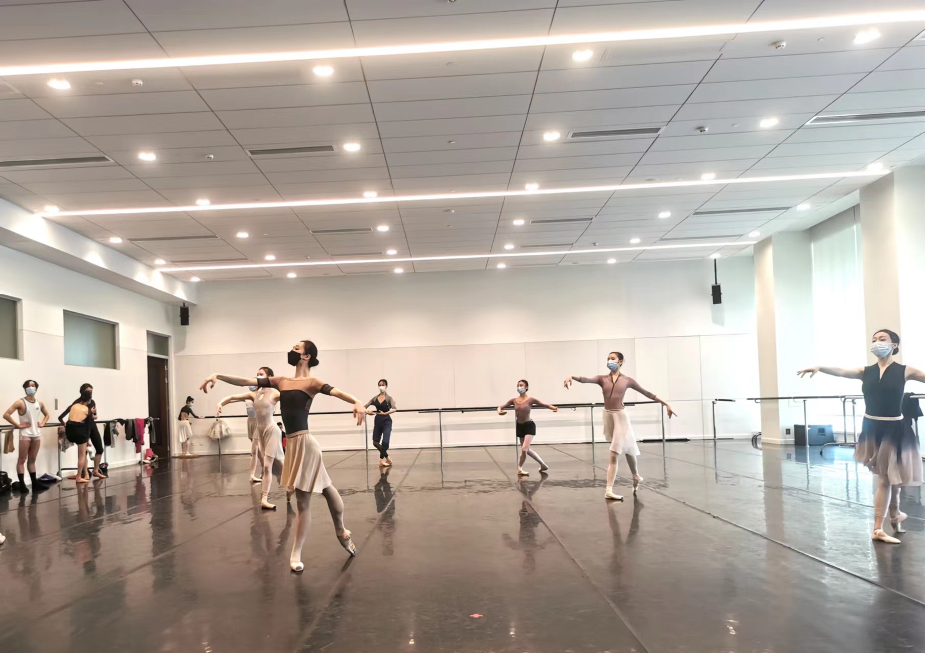 6月1日上午9点30分,位于虹桥路1650号一号楼的上海芭蕾舞团排练厅内,响起了悠扬的钢琴声。伴随着足尖落地时发出的哒哒声,30余位上芭舞者时隔两个月再次回到了久违的教室,开启了复工后的第一堂集训课。
