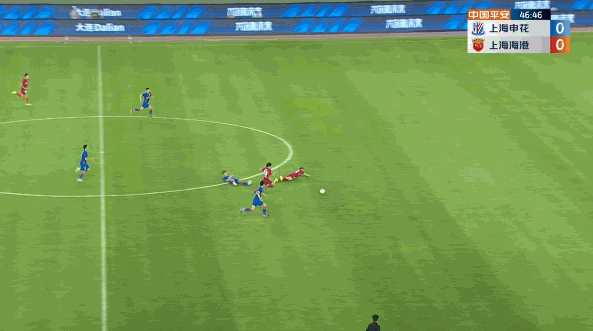 下半场,全华班出战的海港队率先获得一次反击机会。利用申花在角球配合中的失误,海港队由冯劲和刘祝润形成反击,冯劲被放倒之后,刘祝润单刀突进,只可惜面对出击的申花门将马镇,已经跑到极限的刘祝润已经有些体能透支,射门偏软无力,还偏出了门框,错过了进球的大好机会。